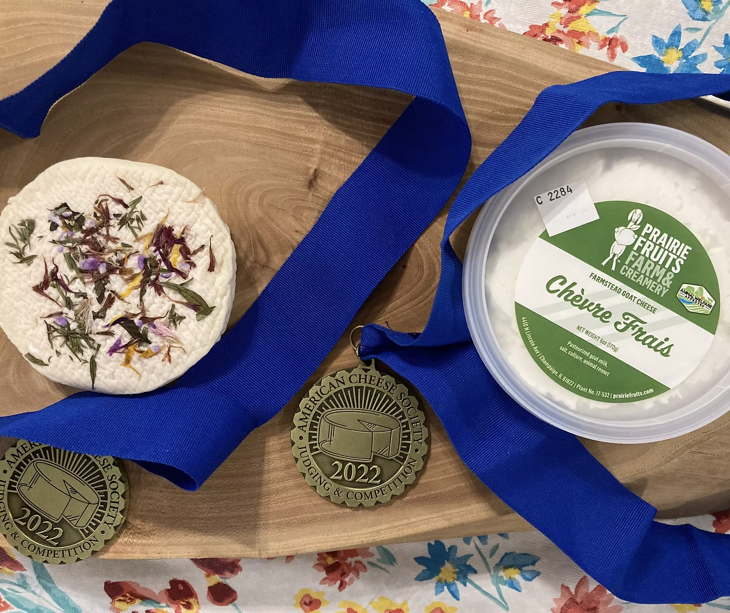 Located just outside of Champaign, IL, Prairie Fruits Farm and Creamery combines excellent animal husbandry and land stewardship with award-winning cheese making technique. Fresh chevre is available year round, and each season brings its own special releases from the creamy, ash dusted Black Goat to their nutty, tomme-style Moonglo. Prairie Fruits was started in 2004 by Leslie Cooperband and Wes Jarrell, and their vision is currently being carried forward by Lauren and Jeffrey Brokish. Beyond the work of raising goats and making phenomenal cheeses, Prairie Fruits also offers on-farm stays through Airbnb and is the site of seasonal restaurant Caprae. Learn more about Prairie Fruits here. What we source: various cheeses.